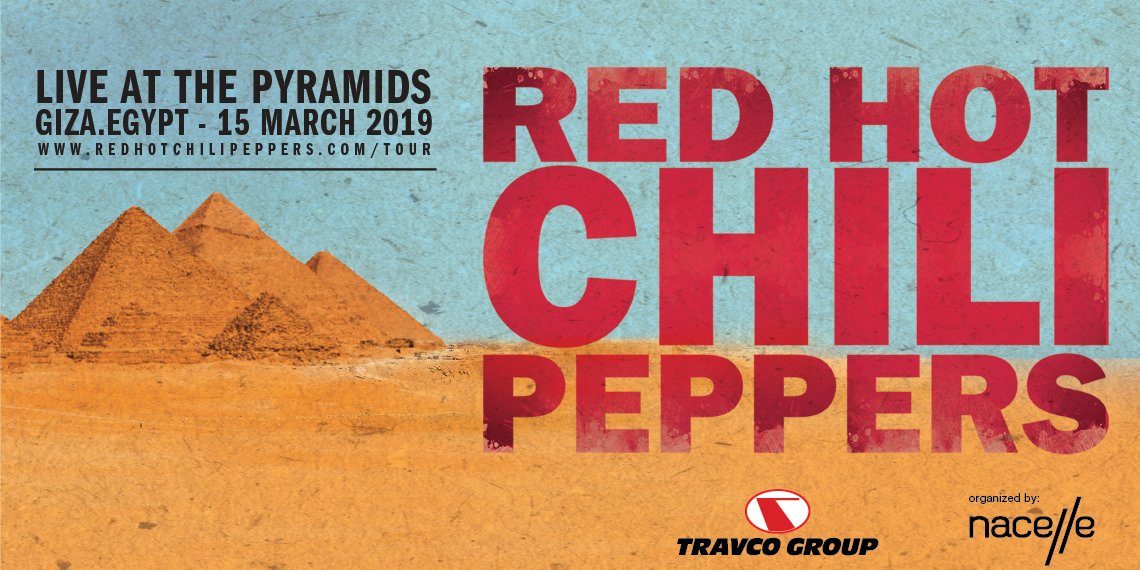 فرقه الصخرة الامريكيه الاسطوريه من الفلفل الحار الأحمر من المقرر ان تؤدي امام أهرامات مصر الكبرى في الجيزة يوم 15 مارس ، مع تذاكر الذهاب للبيع في 18 يناير.